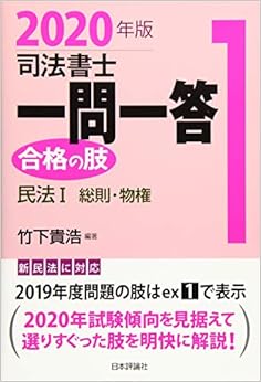 司法書士一問一答 合格の肢1 民法1 総則・物権(新民法対応版) (日本語) 単行本 – 2019/10/23 - 受験生の信頼も厚い著者が、択一式試験過去問の選択肢を使って、合格水準に必要な知識と解法を伝授。2020年度試験対応の最新版。